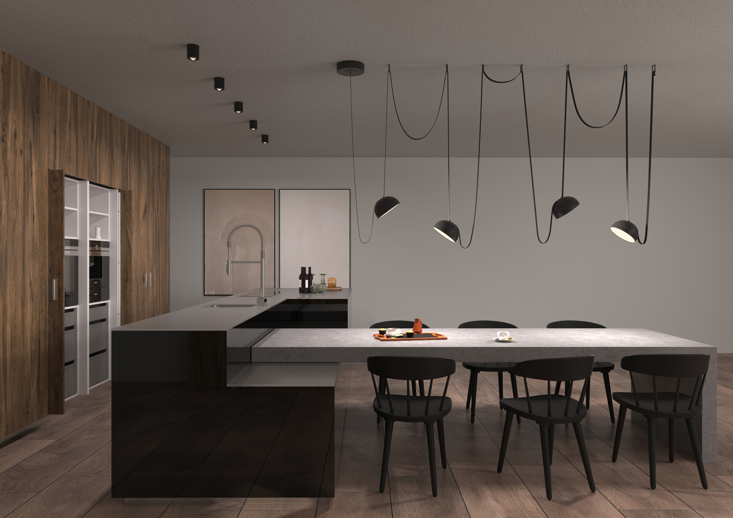 Система Sling System от Donolux предлагает несколько видов светильников с рассеянным светом, что позволяет создавать разнообразные эффекты освещения. Комбинируя расположение лент, креплений и светильников, можно создавать индивидуальные дизайнерские решения.